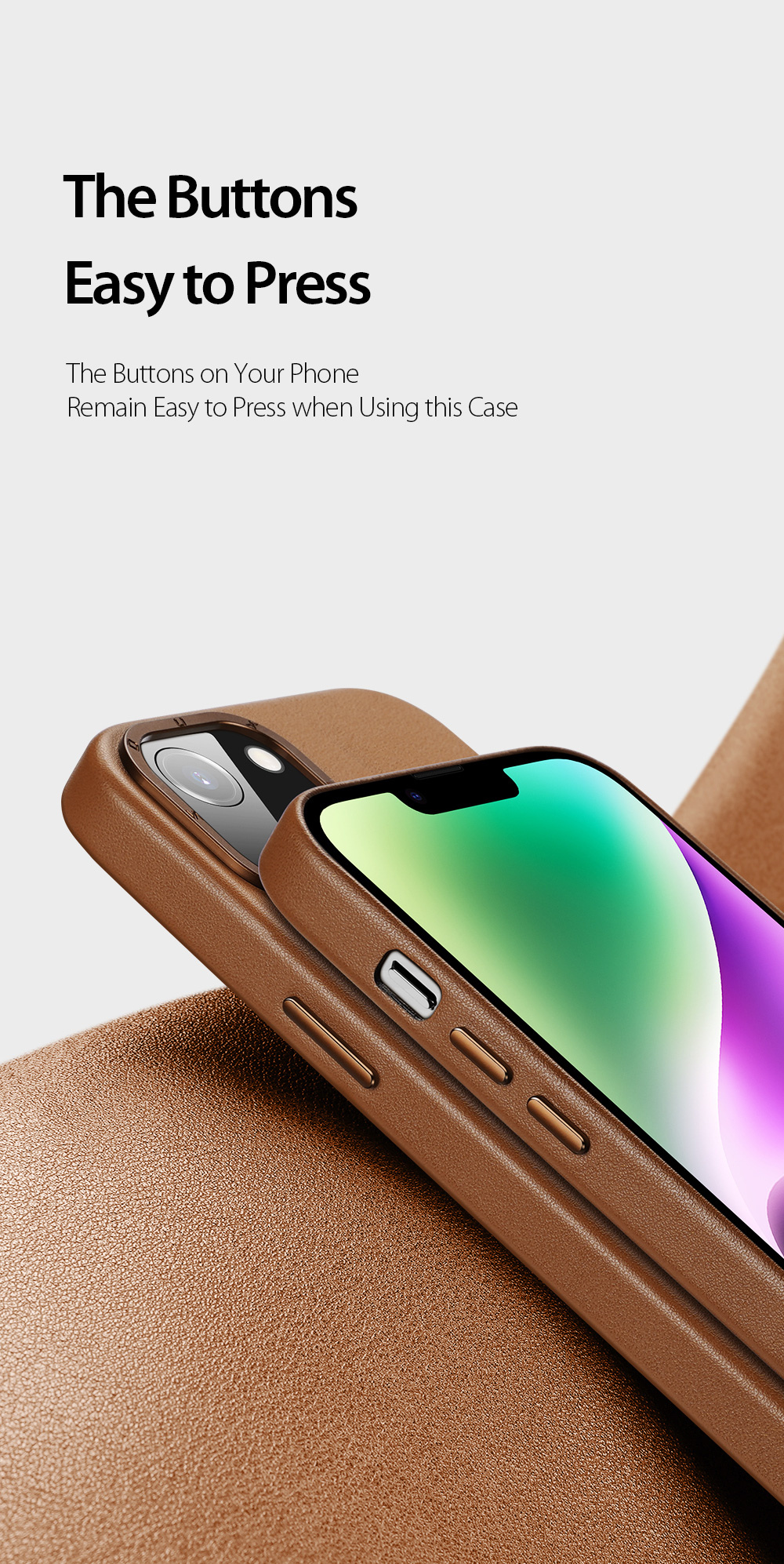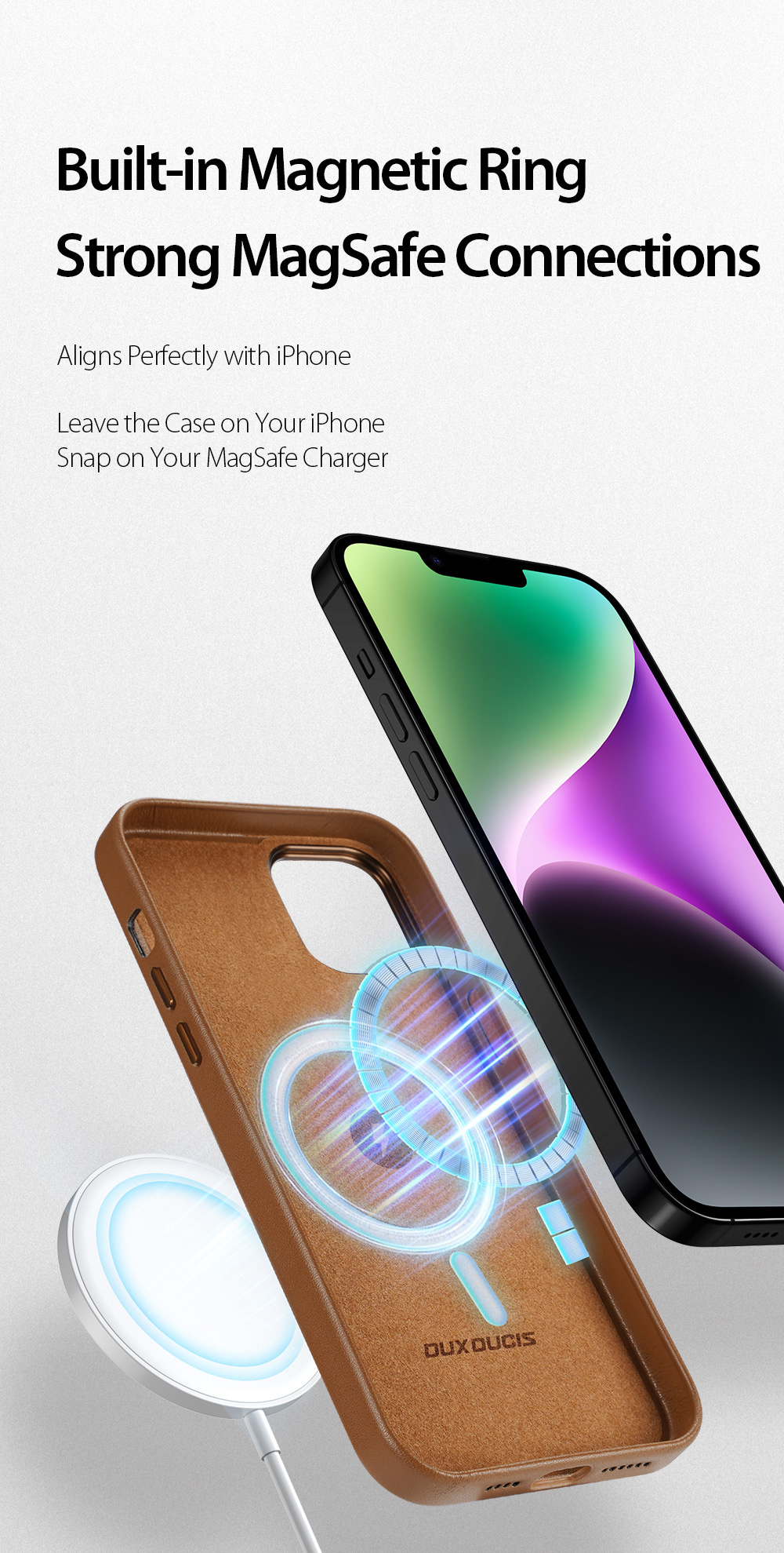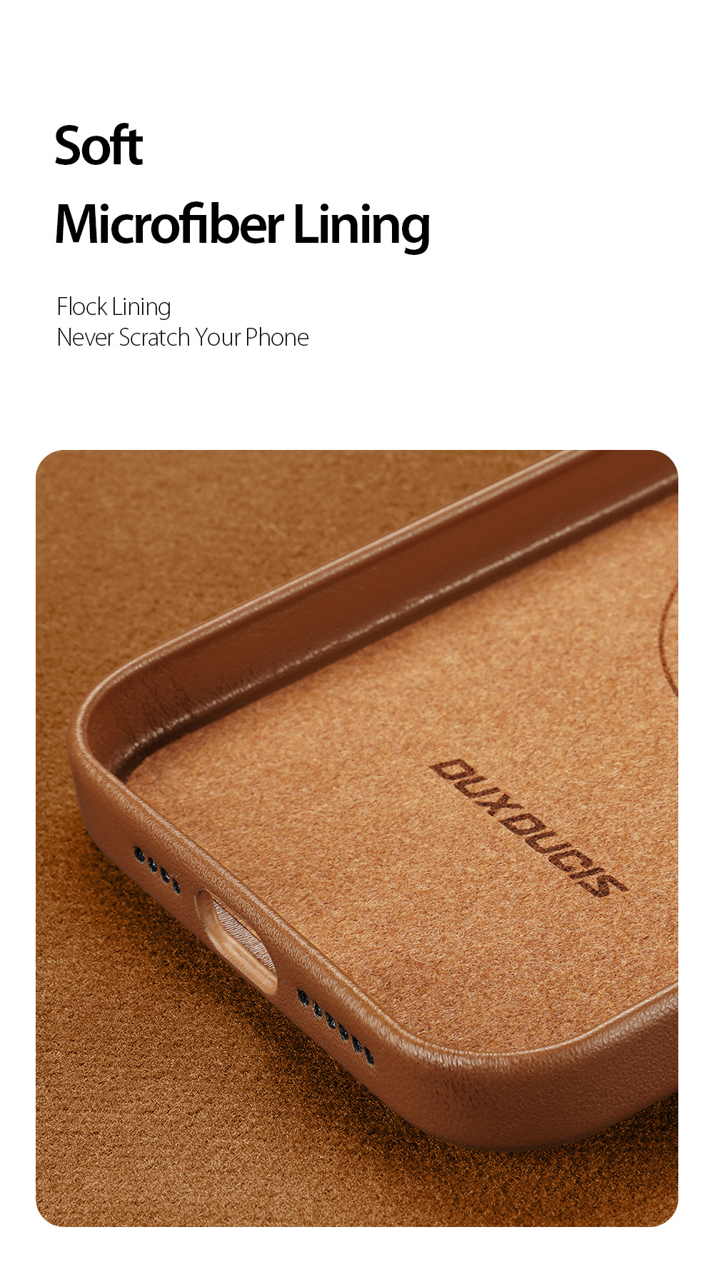 This MagSafe-enabled back cover, made of smooth PU leather and soft microfiber lining, complements your iPhone  elegantly while providing protection.