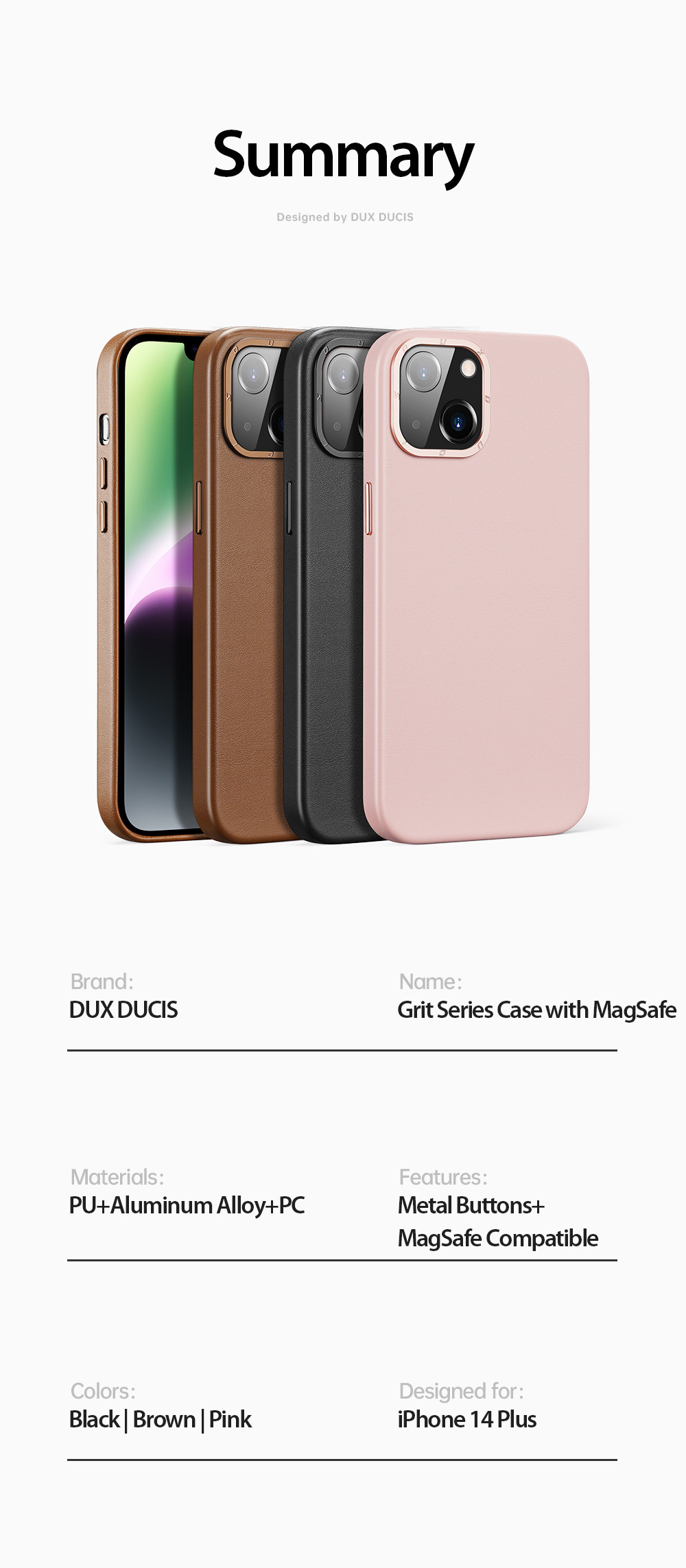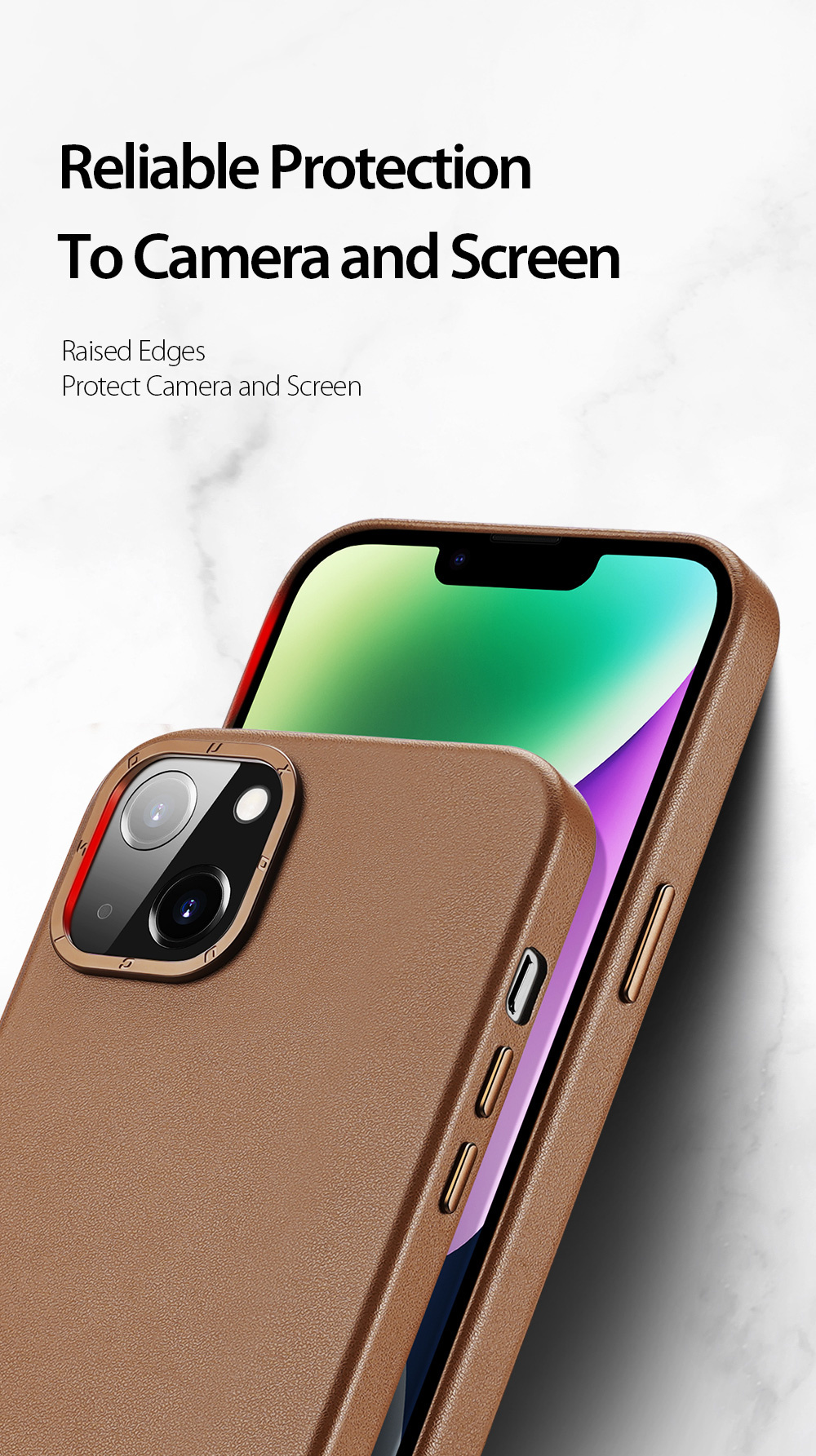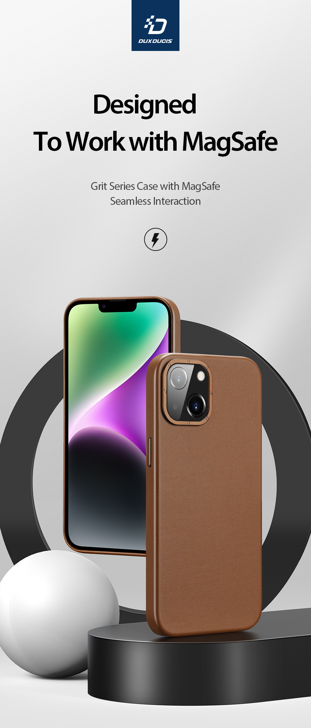 This MagSafe-enabled back cover, made of smooth PU leather and soft microfiber lining, complements your iPhone  elegantly while providing protection.