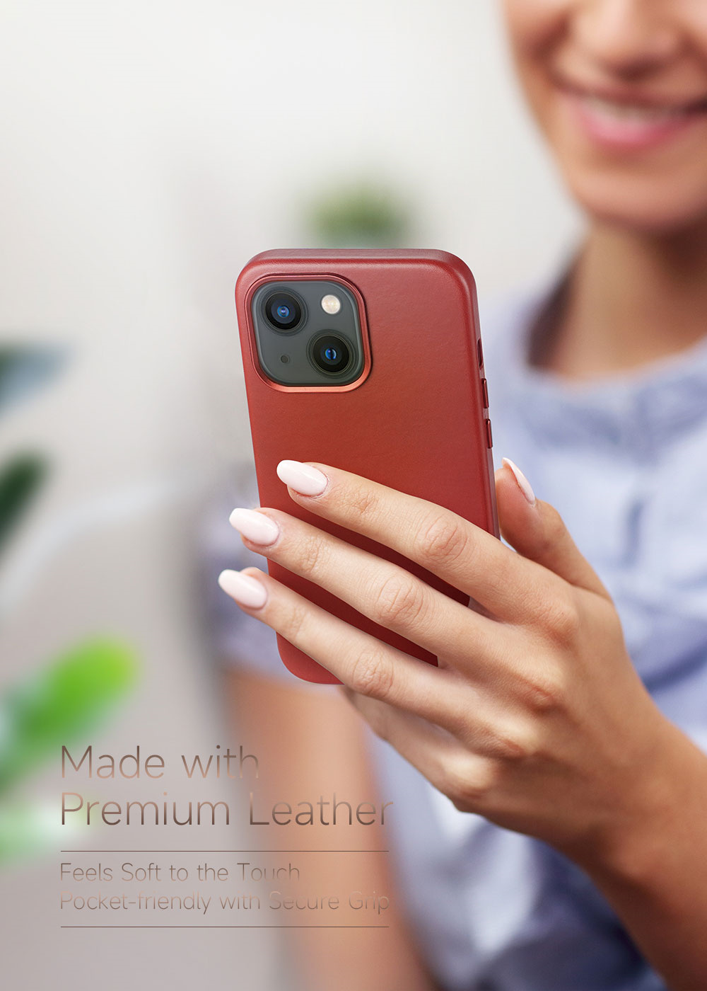 Designed to complement with iPhone 13-14 series, this leather back cover with MagSafe will protect your iPhone in a delightful way.