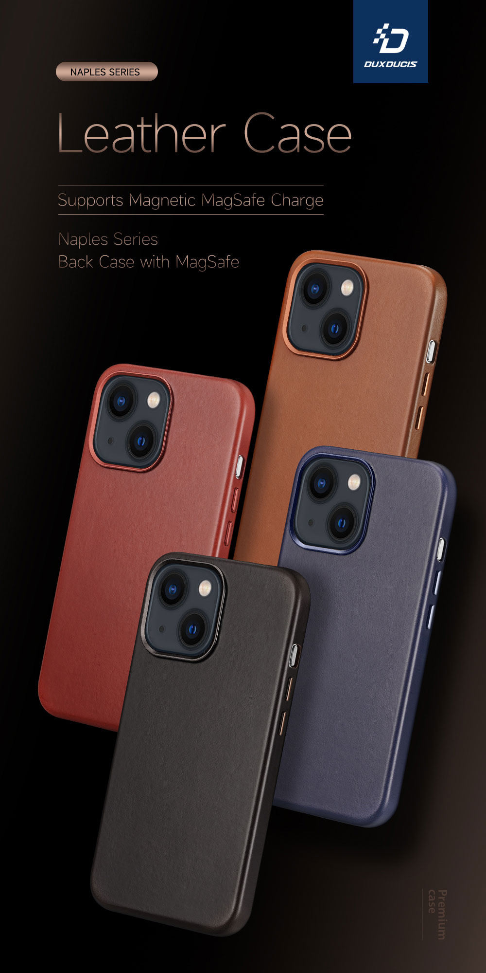 Sleek and protective, our leather case with MagSafe is designed to perfectly complement the iPhone 13-14 series, offering a delightful blend of elegance, functionality, and compatibility with Apple’s MagSafe charger and Qi wireless charging.