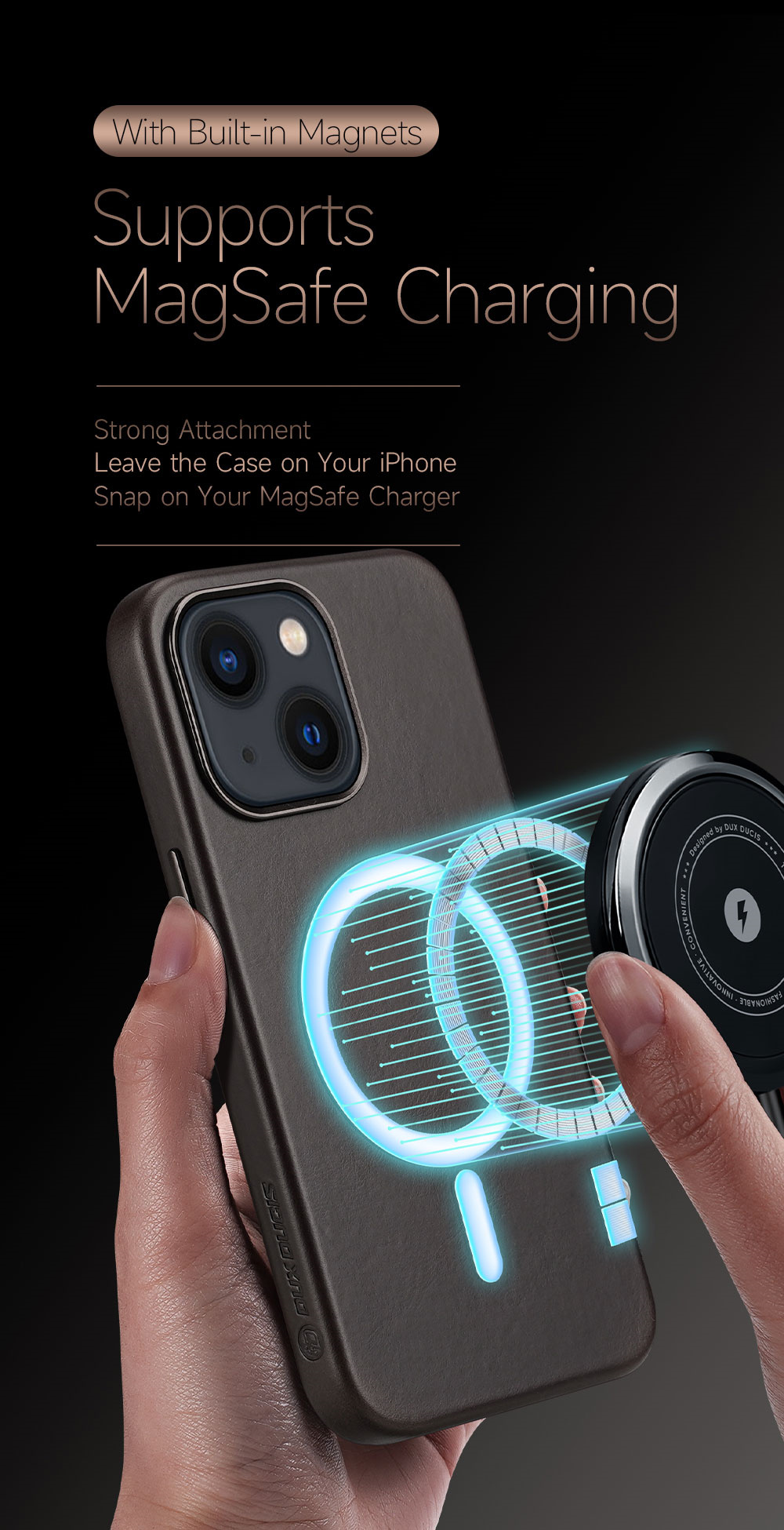 Sleek and protective, our leather case with MagSafe is designed to perfectly complement the iPhone 13-14 series, offering a delightful blend of elegance, functionality, and compatibility with Apple’s MagSafe charger and Qi wireless charging.