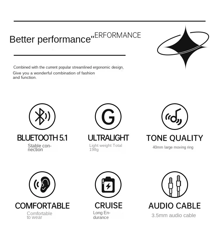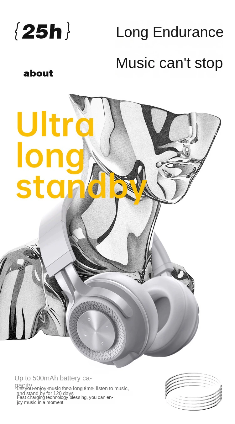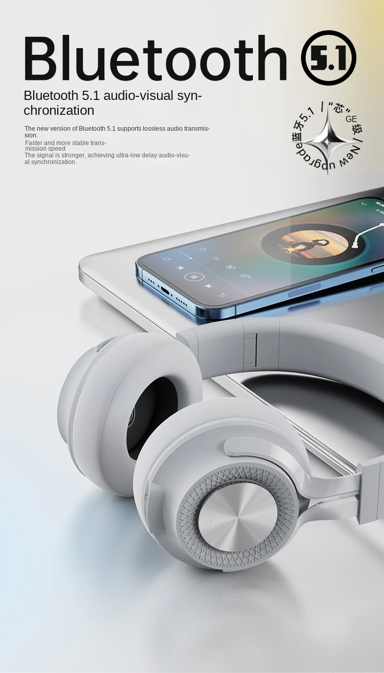 Bluetooth 5.1 , with 3.5MM audio cable, both can wireless and wired. Memory Card Can Be Inserted. 25h ultra long standby.